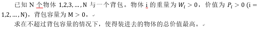 输入第一行为两个正整数N和M,分别表示物品个数和背包容量