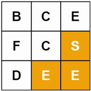 board[] ={"BCE""FCS""DEE" } word = "SEE“