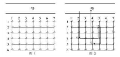 例如在图2所示的花生田里,只有位于(2 5) (3 7) (4 2) (5 4)的植株下长有花生,个数分别为13 7 15 9。沿着图示的路线,多多在21个单位时间内,最多可以采到37个花生。