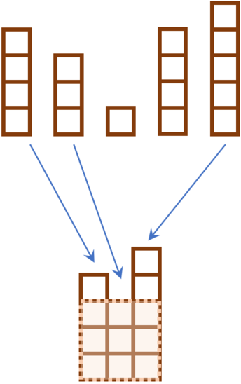 这些木板都是边角料,宽度仅为1,长度为ai。拼接时将选定的垫子对齐放在一起(注意,不可旋转!),然后切割出一块正方形的垫子。