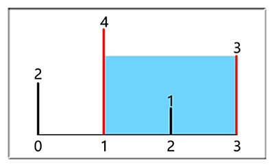 如下图,height[]={2,4,1,3},n=4; 则盛最多水的容量为(3-1)*3=6。