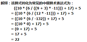 输入:10 6 9 3 + -11 * / * 17 + 5 +