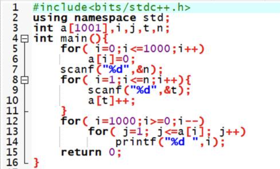 (2) 输入有多个相同的数字,输出时排列在一起 。( )