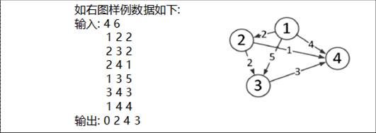 给定一个有n个顶点m条边的有向图,请计算从顶点1(first=1)出发到各点的最短距离。
