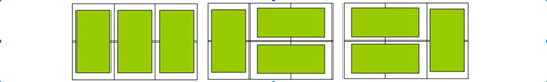 例如:n=3时,有2×3方格,骨牌的铺放方案有三种方法,如下图所示: