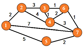 如下图共有3条最少时间到达n的方案: (1) 1 → 7 ; (2) 1 → 5 → 7 ; (3) 1 → 2 → 3 →6 → 7 。 输出答案为3 。