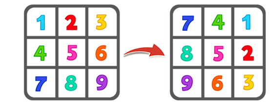 输入一个n行m列的数字图像矩阵,请你将它依顺时针旋转90度后输出图像矩阵。