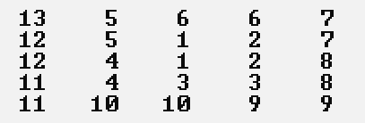 1=<n<=7 (注意每个数字都会占用 5 个字符,前面使用空格补齐。)