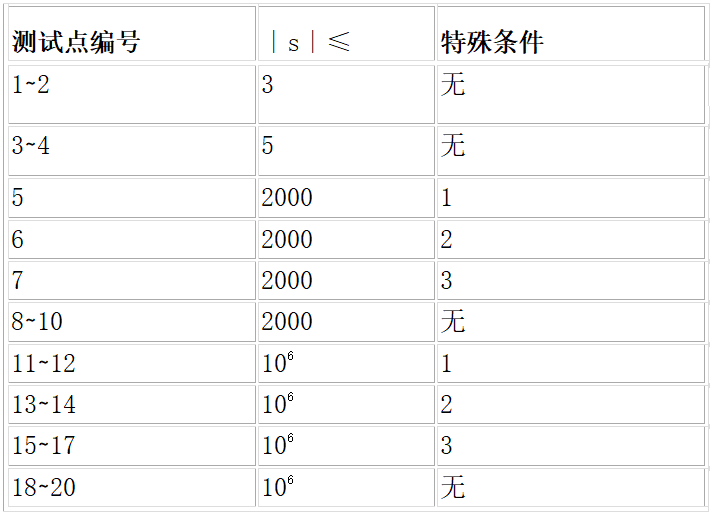 设∣s∣为字符串s的长度。对于所有数据,1≤∣s∣≤106。