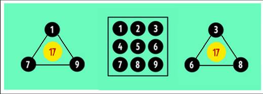 小明将数字1到9摆放成如下的两个三角形,使得每一个三角形边上的三个数字相加的和相等。李老师问小明是否还能摆放成和为其他数的两个三角形和数,且两个三角形内的数字各不相同。请你帮助小明试试能否摆放成和为 s的两个三角形和数。若能摆放输出 true 不能摆放则输出 false。