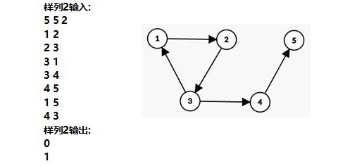 寒假里玲玲设计了一个可在有向图上玩的游戏。给定一个有向图(可能有环),每轮游戏有一个起点和终点,给定一枚棋子,从起点A先移动棋子,然后他们交替移动,当谁把这枚棋子移动至终点,谁就胜利了。同样,若是有人无法移动了,就会被判失败。现请你在给定的有向图上判别若A必胜,输出1,若B必胜,输出-1,若两人均无必胜策略,输出0。