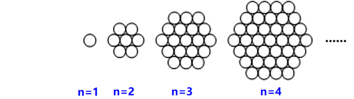 如下图,在由等圆组成的一组图中,第1个图由1个圆组成,第2个图由7个圆组成,第3个图由19个圆组成,…… 依照此规律排列下去,则第n个图形由多少个圆组成 ?