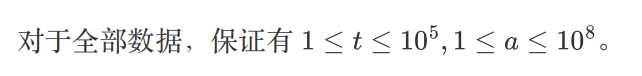 第一行包含一个正整数t,代表测试数据组数。 对于每组测试数据,第一行包含一个正整数代表a。